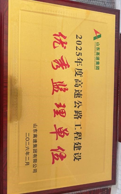 當(dāng)前位置:網(wǎng)站首頁>>監(jiān)理咨詢| 監(jiān)理公司榮獲山東高速集團(tuán)“2025年度高速公路工程建設(shè)優(yōu)秀監(jiān)理單位”稱號(hào) |
